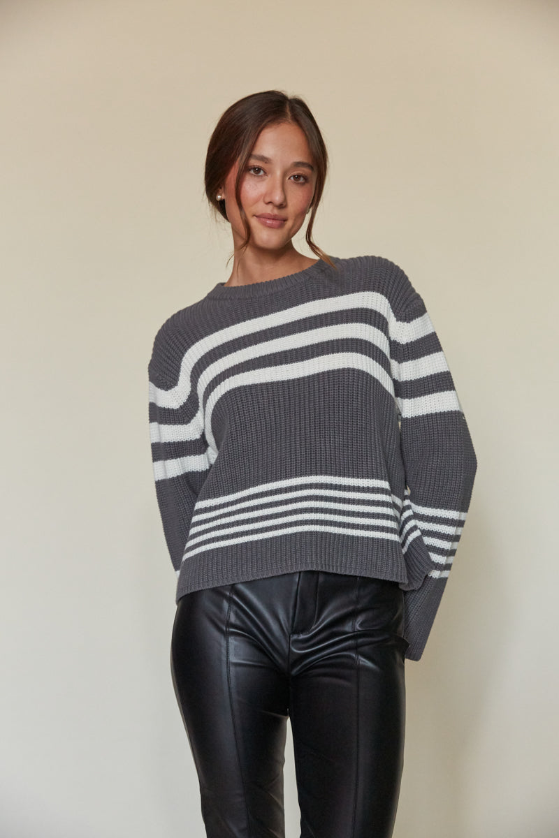 You'll be craving cozy mornings in the Adi Striped Knit Pullover! This cuddly sweater features a crew neckline, long sleeves with drop shoulders, and a horizontal striped design. Pair with the to complete the look!