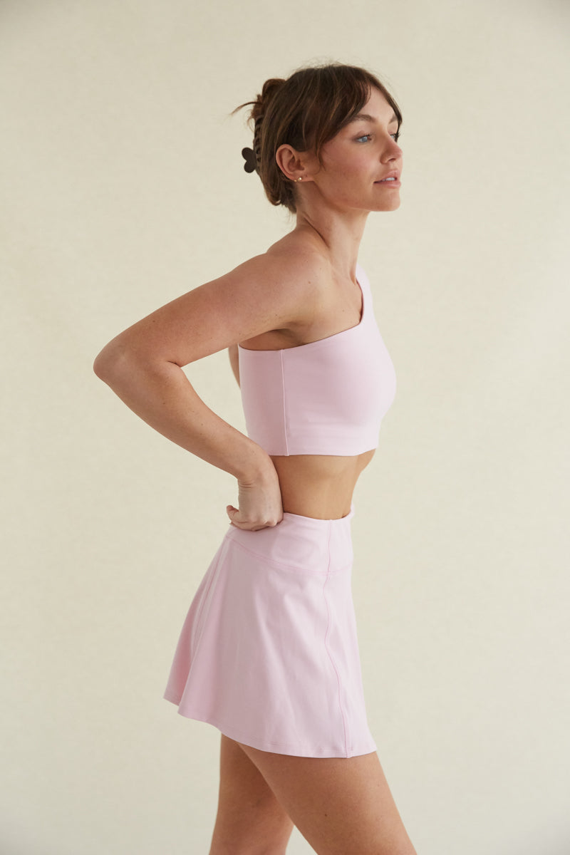 So cute in the Avery Smoothing Flare Tennis Skort! This tennis skort features signature butter-soft, smoothing fabric with four-way stretch, an ultra flattering flare silhouette, and lifting built in shorts with pockets. Available in pink, , , and . Complete the set with the !