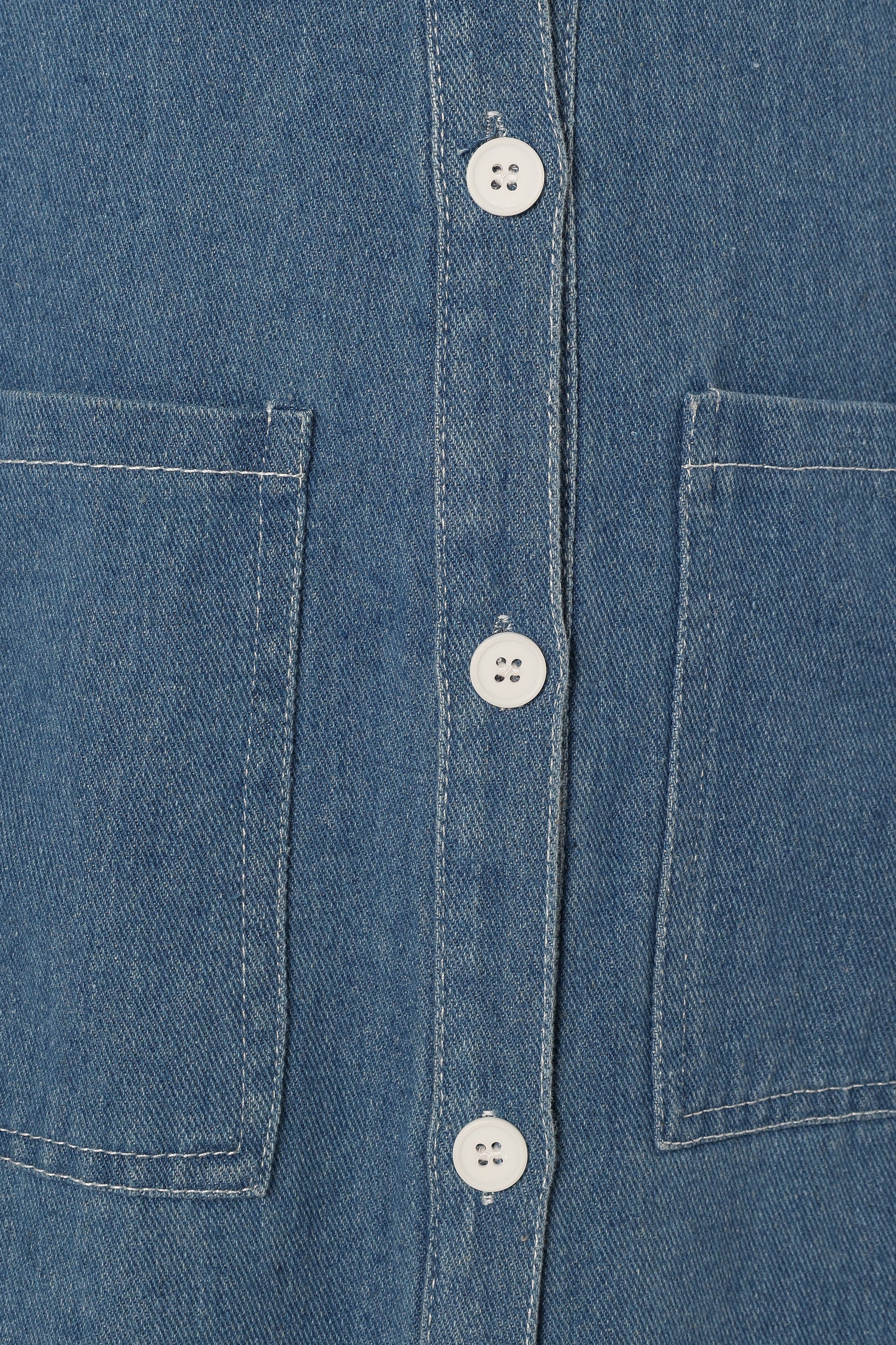 This midi dress in denim is the perfect addition to your wardrobe! It's designed with functional button down close and front pockets. Featuring a shirred back panel for extra comfort.
