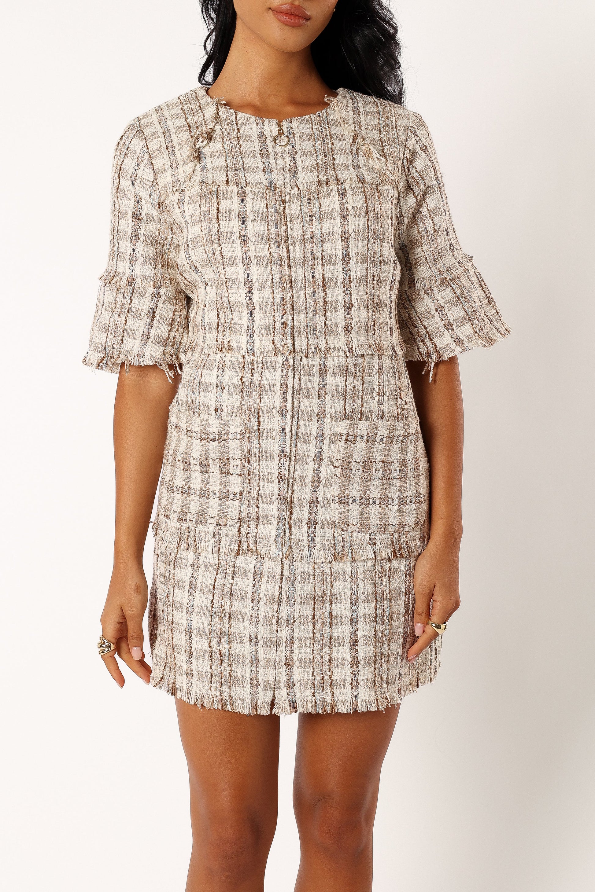 Calloway Mini Dress - Cream Tweed