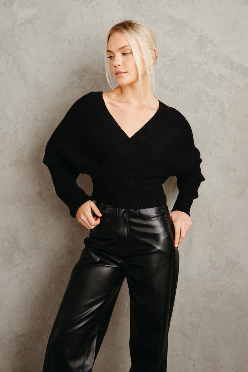 Take your autumn style to the next level with the Charmaine Open Back Sweater! This chic sweater top is made of a ribbed knit fabric and features a surplice silhouette with a banded hem, drop shoulders, fitted cuffs, and tie back detail. Available in cream and black. Pair with and trendy jewelry from to complete the look!