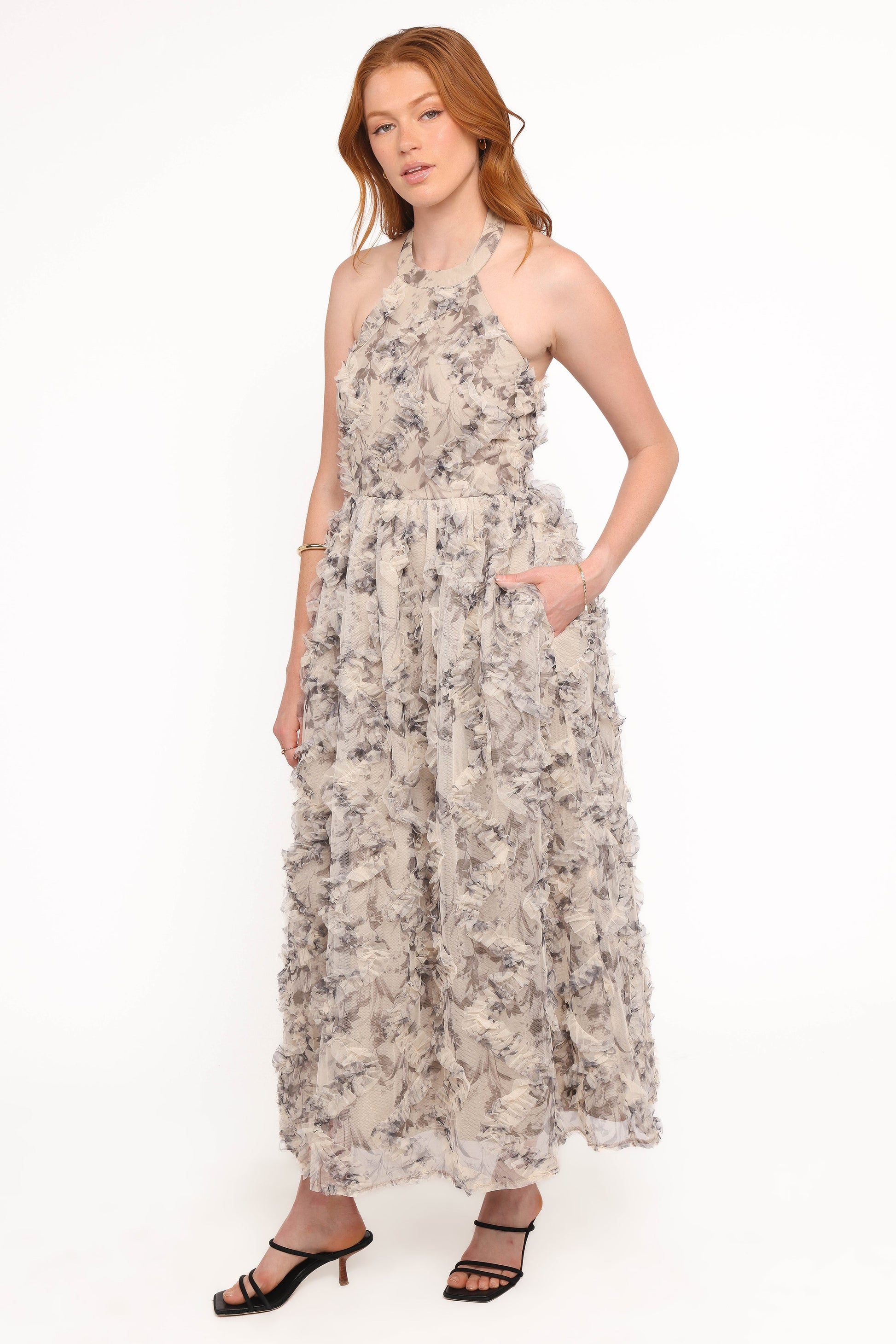 Step into your next garden party or daytime event with confidence in the Delora Midi Dress. This piece is designed to create a beautiful silhouette, featuring a chic halter neckline that ties at the neck for a custom fit.