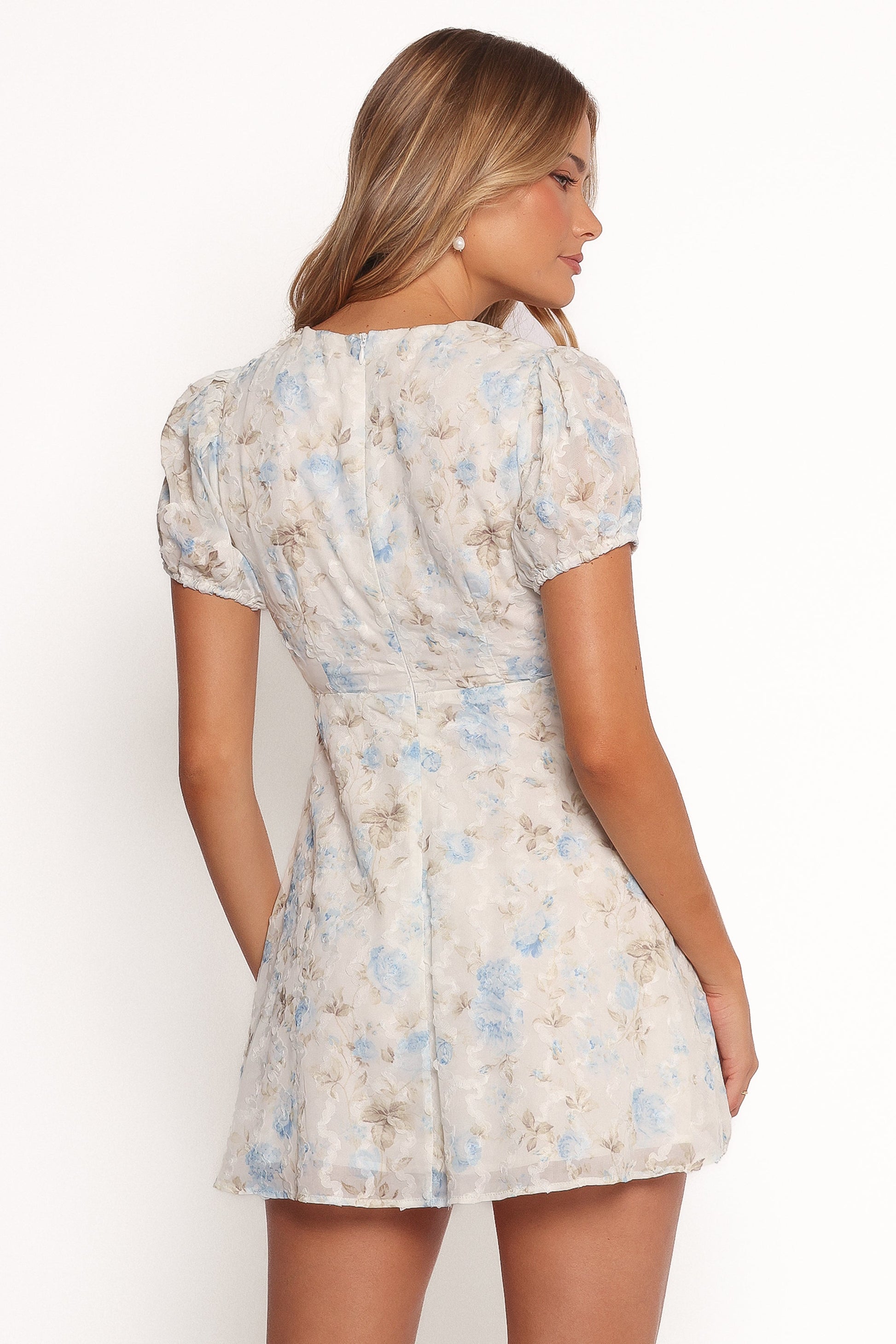 Marisol Mini Dress - Cream Blue Floral