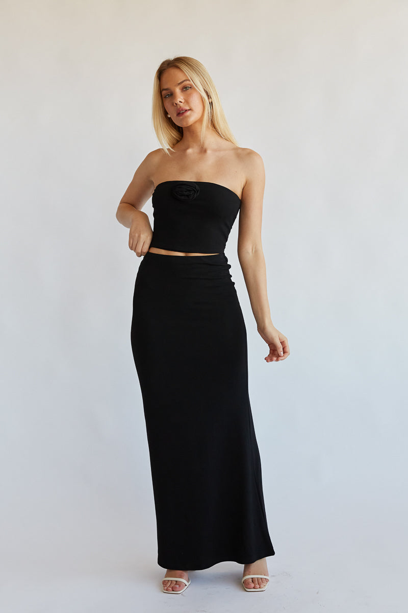 The Rosalyn High-Rise Maxi Skirt is a wardrobe essential! This stunning skirt features a maxi length, elastic waistband, and a high-rise fit. Pair with the matching to complete the set!