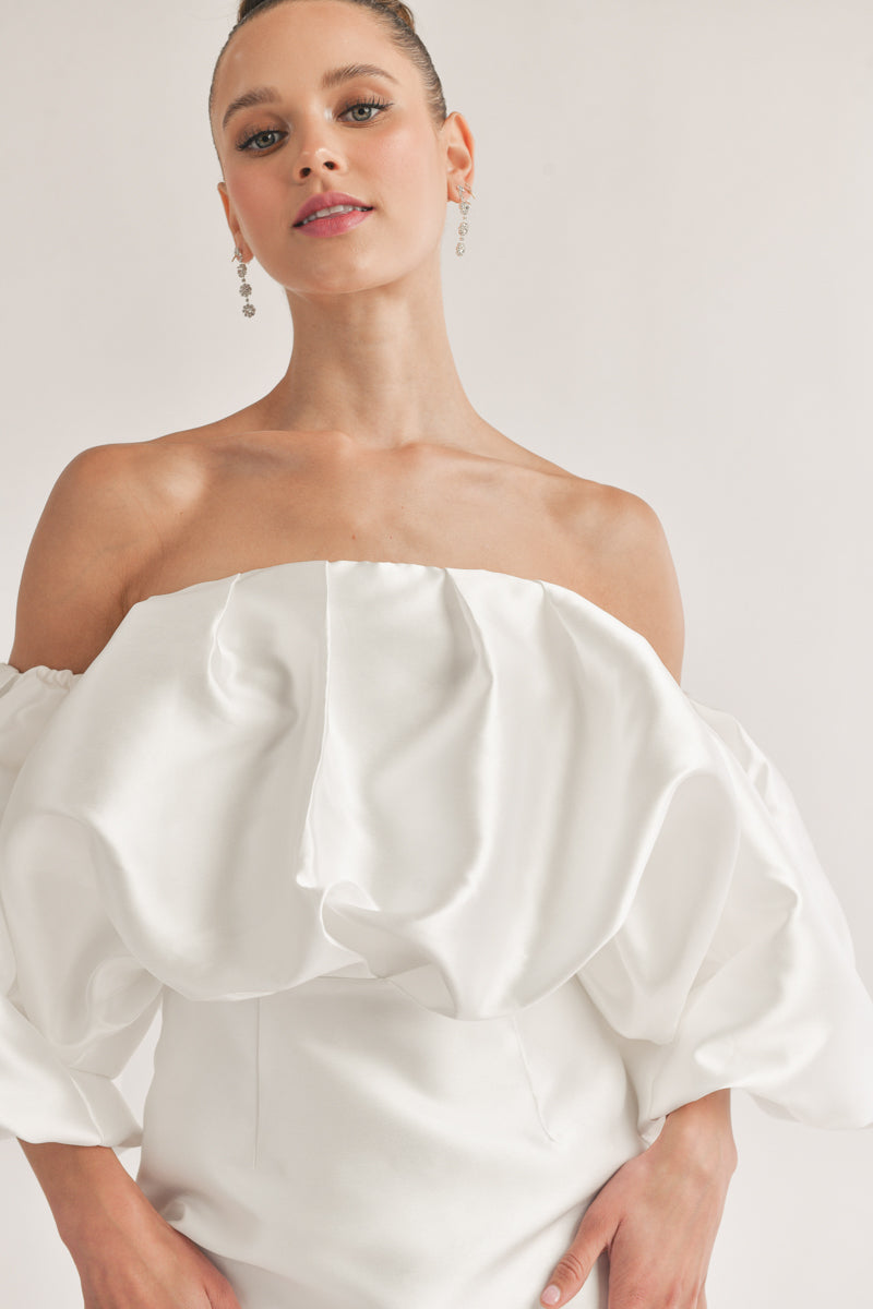 You'll look like you just stepped out of Heaven in the Theresa Off-The-Shoulder Puff Sleeve Mini Dress! This stunning dress features an A-line silhouette and a puffed bodice and off-shoulder sleeves. Pair it with a sleek for an unforgettable look!