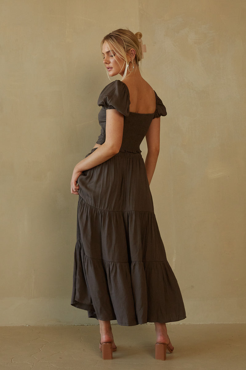 Make everlasting memories in the Topanga Twist Front Crop Top! This crop top features and double twist front design with a cutout below the bust, puff sleeves, and a smocked stretchy back. Pair with the matching to complete the set!